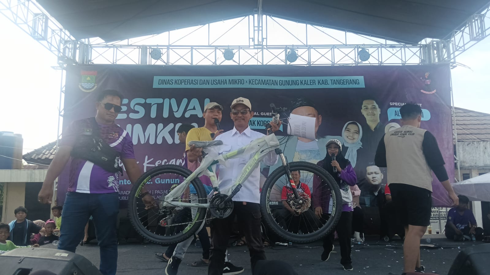 TANGERANG-jurnalnasional.net||Kemeriahan jalan santai dalam rangka Hari Ulang Tahun (HUT) Kecamatan Gunung Kaler ke-20 semakin terasa dengan adanya pembagian berbagai doorprize menarik bagi peserta. Salah satu momen yang mencuri perhatian adalah keberuntungan anggota Pokja Wartawan Gunung Kaler–Kresek (PWGK-Kresek), Samran, yang berhasil membawa pulang hadiah utama berupa satu unit sepeda.jumat(24/4/26)