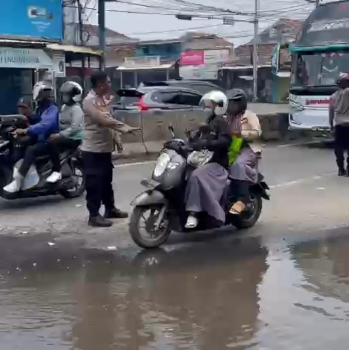 Antisipasi Kemacetan Akibat Genangan Air, Personel Polsek Klari dan Pospam Kanzen Laksanakan Pengaturan Lalu Lintas