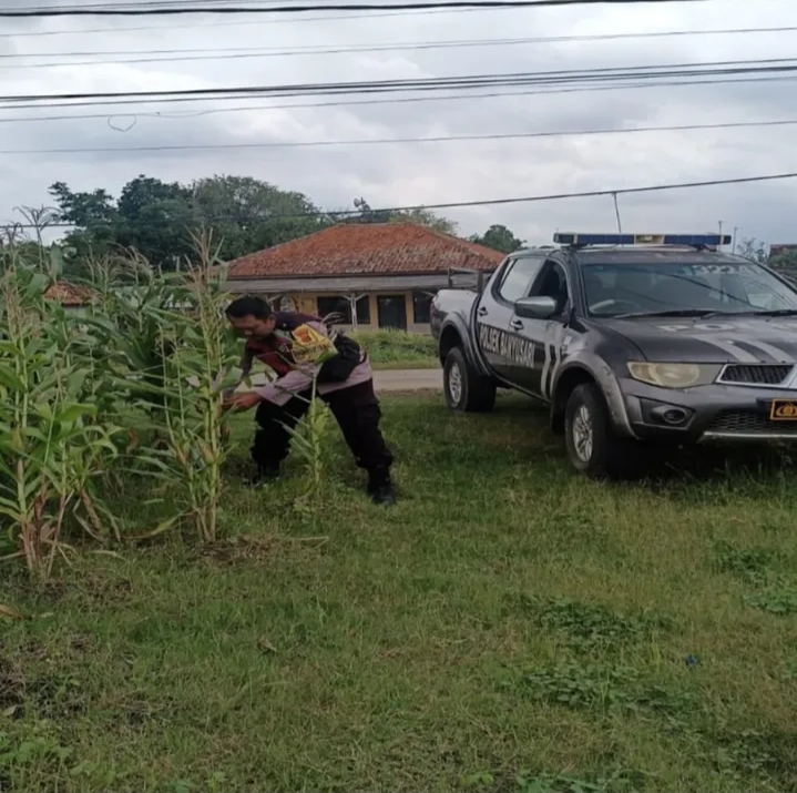 Jurnalnasional.Net || Karawang || Polsek Banyusari Polres Karawang Polda Jabar. Dalam rangka mendukung program ketahanan pangan nasional, Bhabinkamtibmas Polsek Banyusari bersama Kelompok Tani melaksanakan kegiatan peninjauan serta monitoring pertumbuhan tanaman jagung milik warga binaan di lahan pertanian Desa Gempol, Kecamatan Banyusari, Kabupaten Karawang, Selasa 14 April 2026.