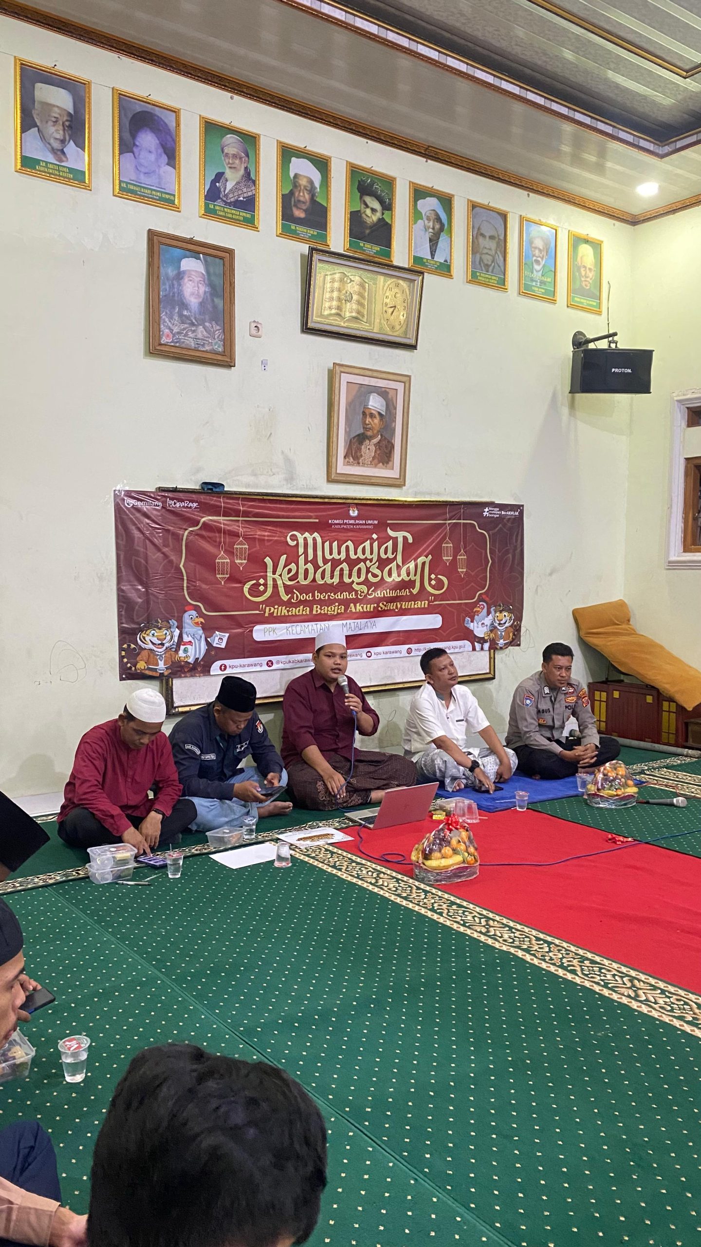 Bersama ketua PPK Kecamatan Majalaya Bhabinkamtibmas melaksanakan kegiatan doa bersama dan pemberian santunan kepada anak yatim untuk mendoakan agar pelaksanaan Pemilu berjalan lancar aman damai dan kondusip.