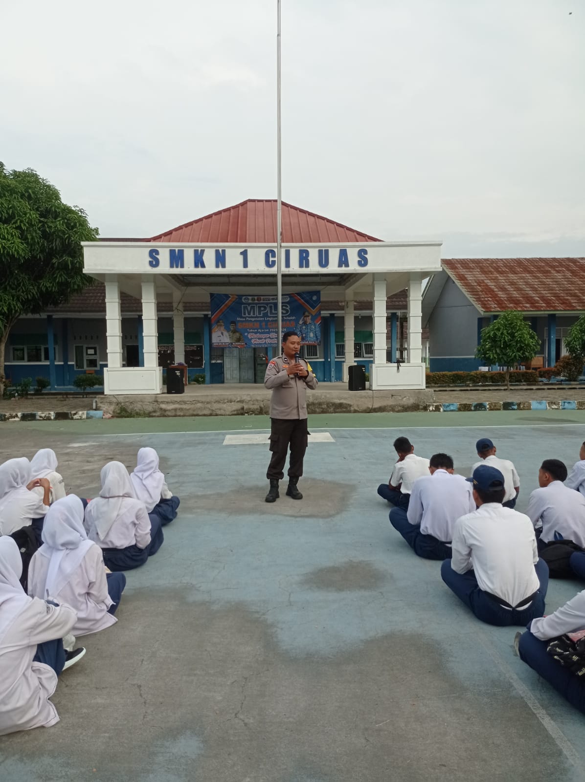 1. SMKN 1 Ciruas – Dihadiri oleh Kepala Sekolah, Dewan Guru, serta seluruh siswa dan siswi, didampingi personel dan Bhabinkamtibmas Polsek Ciruas.
