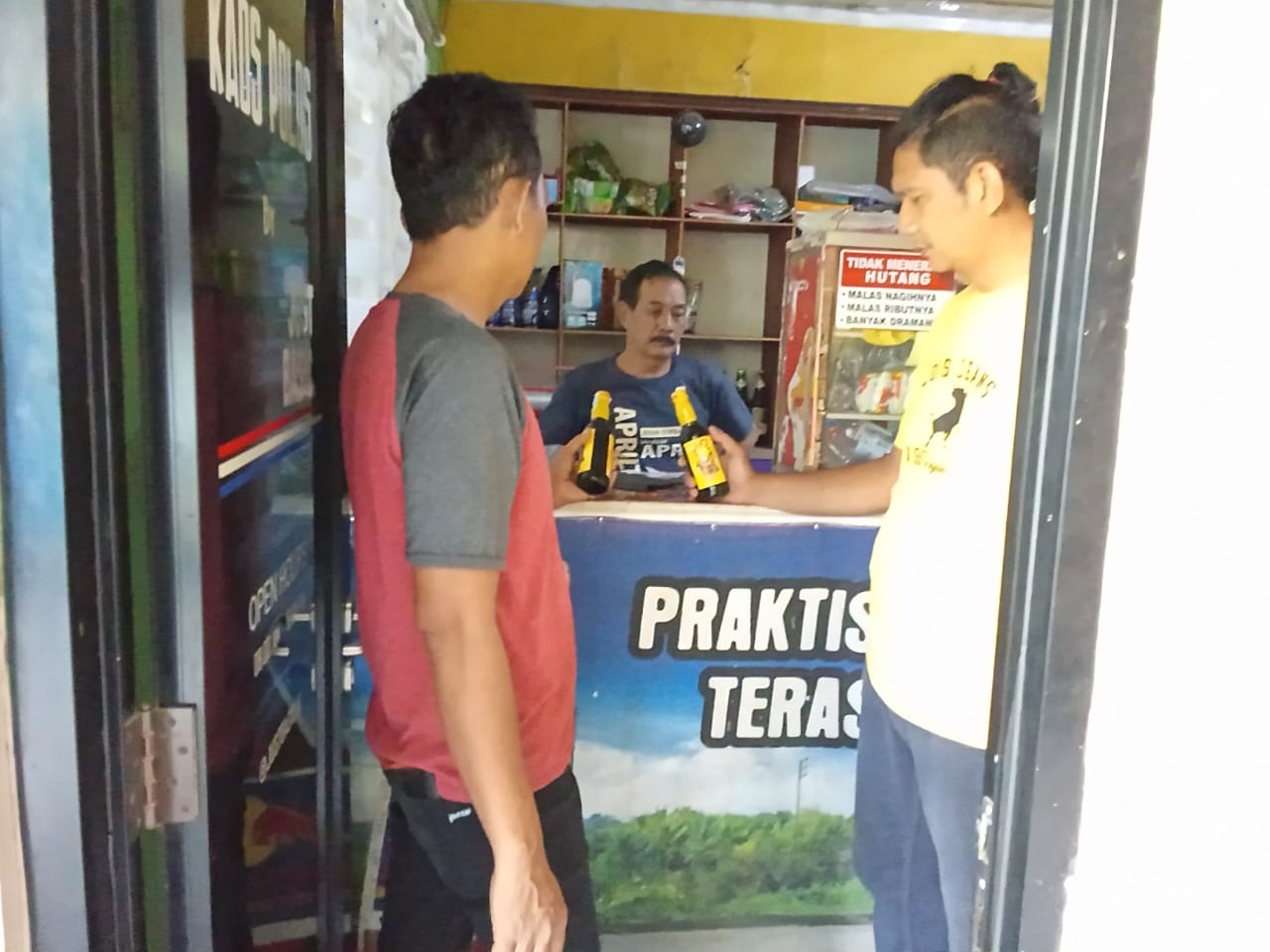 Toko Sdr E dusun Ketimpal desa Cilamaya wetan Kec. Cilamaya Wetan Kab. Karawang dengan Hasil giat 2 botol Arak cap OT.