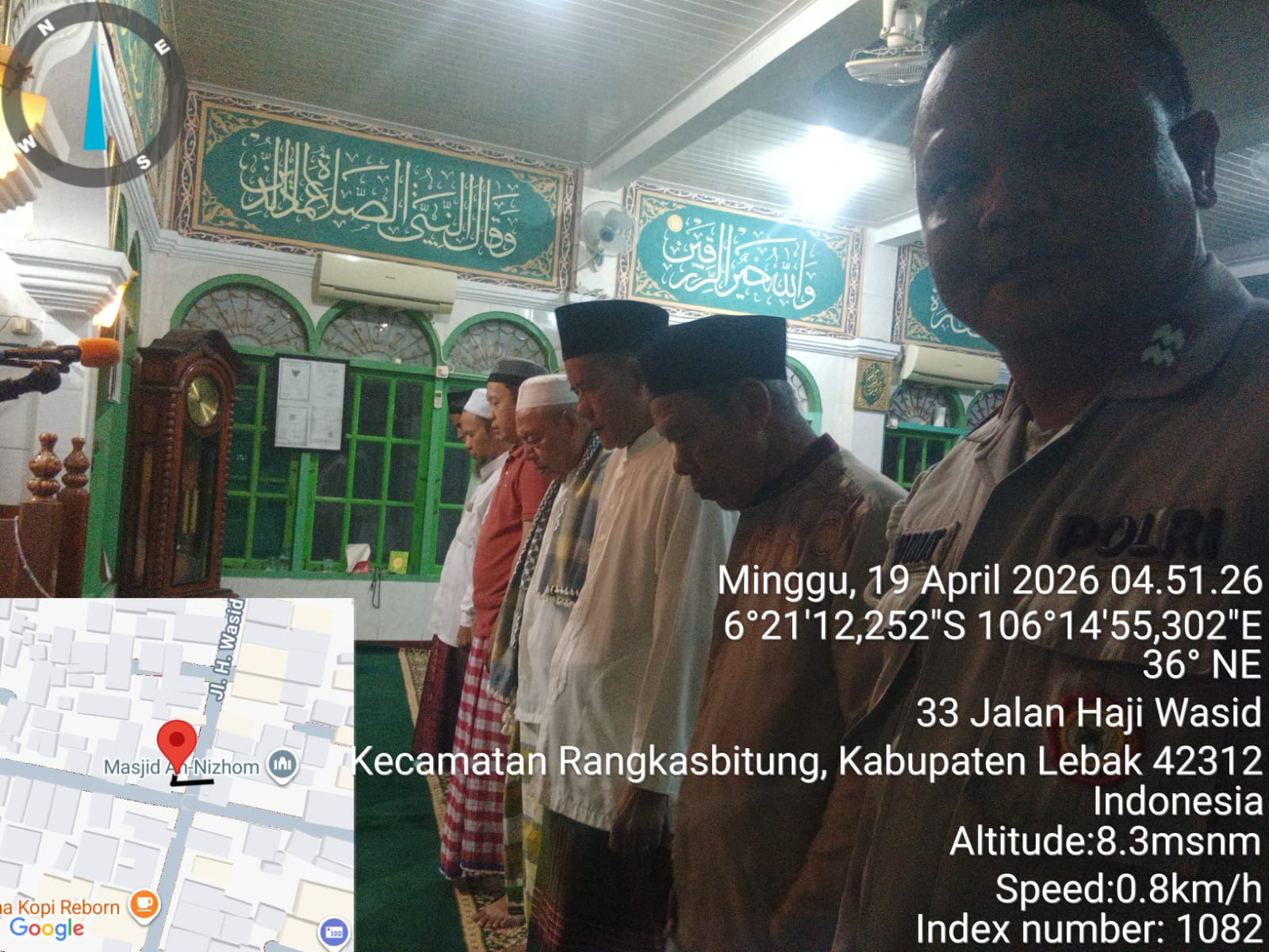 “Ya pagi ini anggota Polsek Rangkasbitung, melaksanakan Program Kapolda Banten yaitu Suling (sholat Subuh Keliling) dengan tokoh agama.