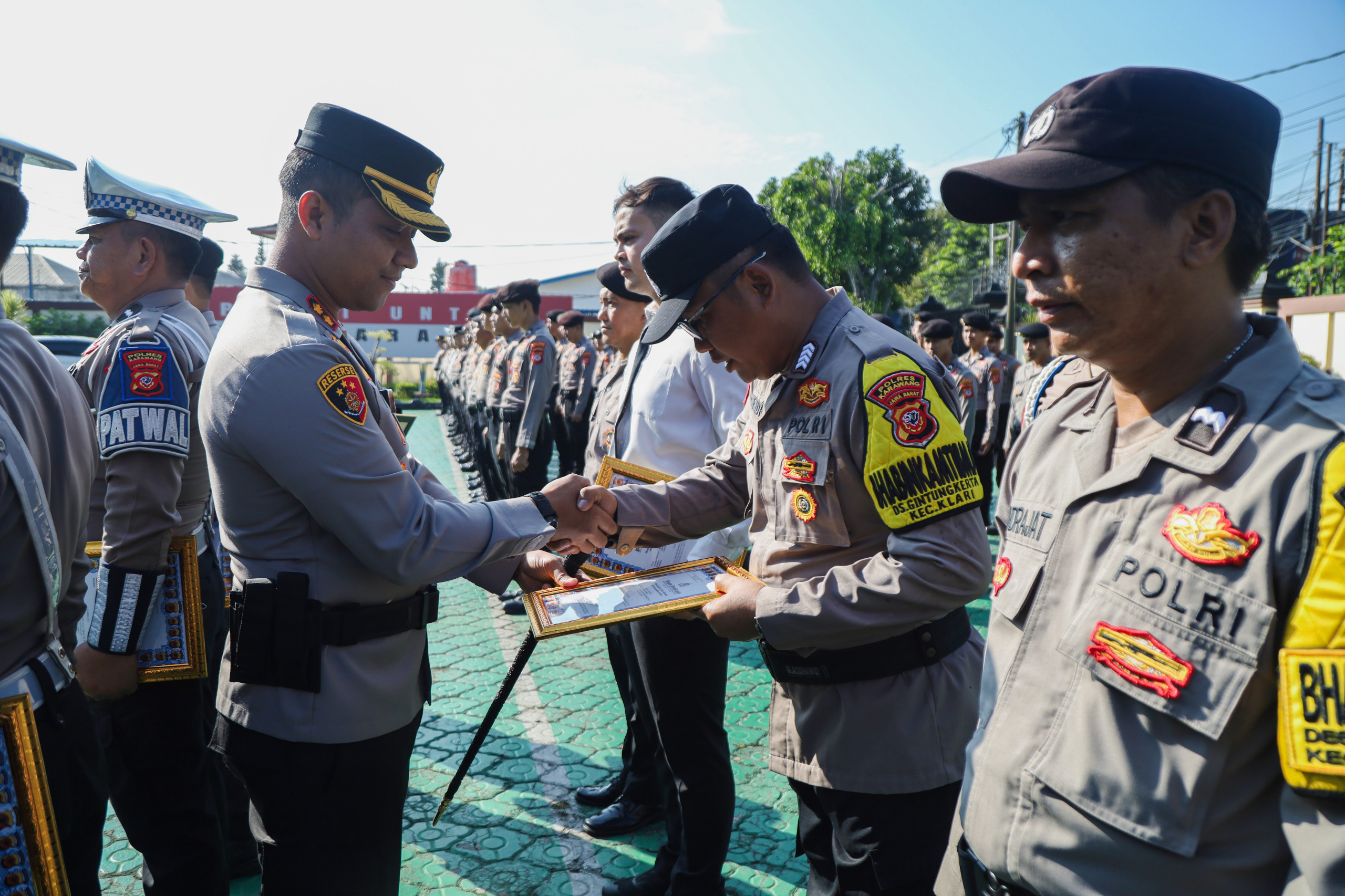 Kapolres Karawang Pimpin Upacara Pemberian Penghargaan bagi Personel Polres Karawang dan TNI, Reward Umroh untuk Bhabinkamtibmas Terbaik