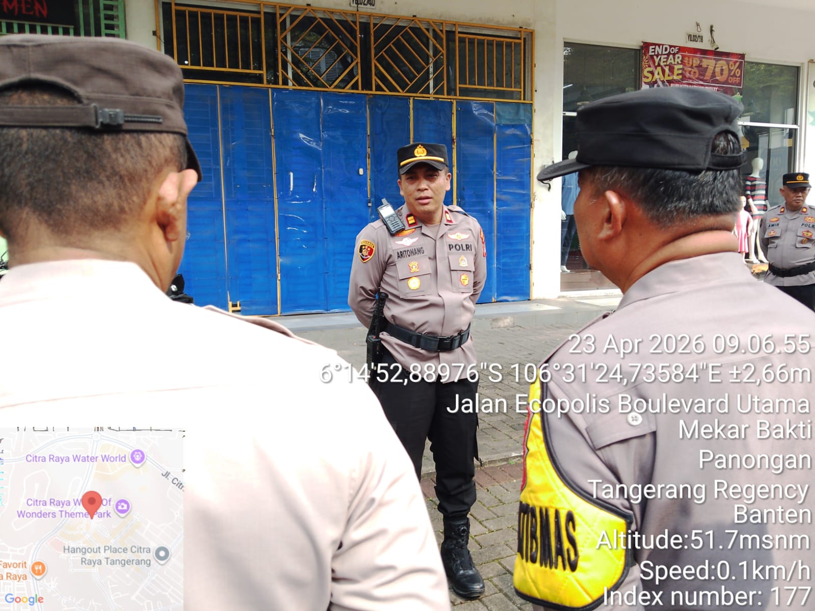 Kabupaten Tangerang –jurnalnasional.net|| Kapolsek Panongan IPTU Irruandy Aritonang, S.H. memimpin apel pengamanan aksi unjuk rasa yang dilakukan oleh Dewan Pimpinan Cabang Pergerakan Mahasiswa Nasional Tangerang Raya di depan Kantor Management Office Citra Raya, Kecamatan Panongan, Kabupaten Tangerang, Kamis (23/4/2026).