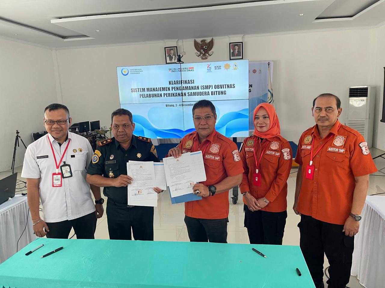 Sambutan dari Kepala Pelabuhan Perikanan Samudera Bitung, Bapak Makkasau, A.Pi., M.Si. Penandatanganan Berita Acara Hasil Klarifikasi Implementasi SMP, sebagai bentuk kesepakatan resmi atas hasil yang dicapai.