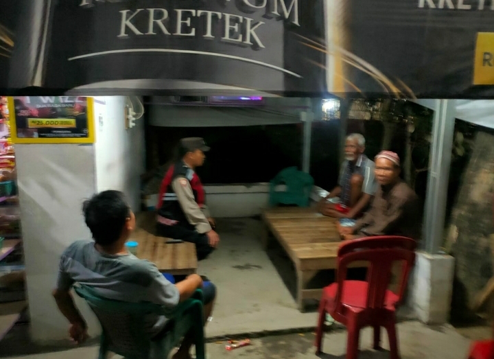 Giat Patroli Malam anggota Polsek Cilamaya Aipda Heri Sugiyanto melaksanakan Kegiatan Gerakan NGAWANGKONG di Pos Kamling yang berada di Wilayah Polsek Cilamaya pada 28 Nopember 2024 Sekira Pukul