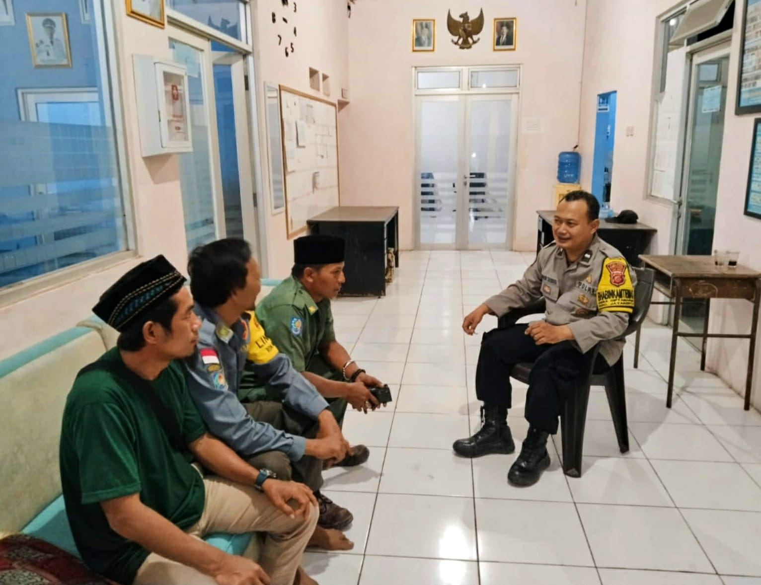 Kegiatan ngawangkong yang dilakukan anggota Patroli Polsek Rengasdengklok Aipda Audien Prasetya Dan Aipda Kusman bersama warga yang sedang melaksanakan tugas jaga ronda di poskamling Dusun Cikangkung Desa Rengasdengklok Utara Kec.Rengasdengklok