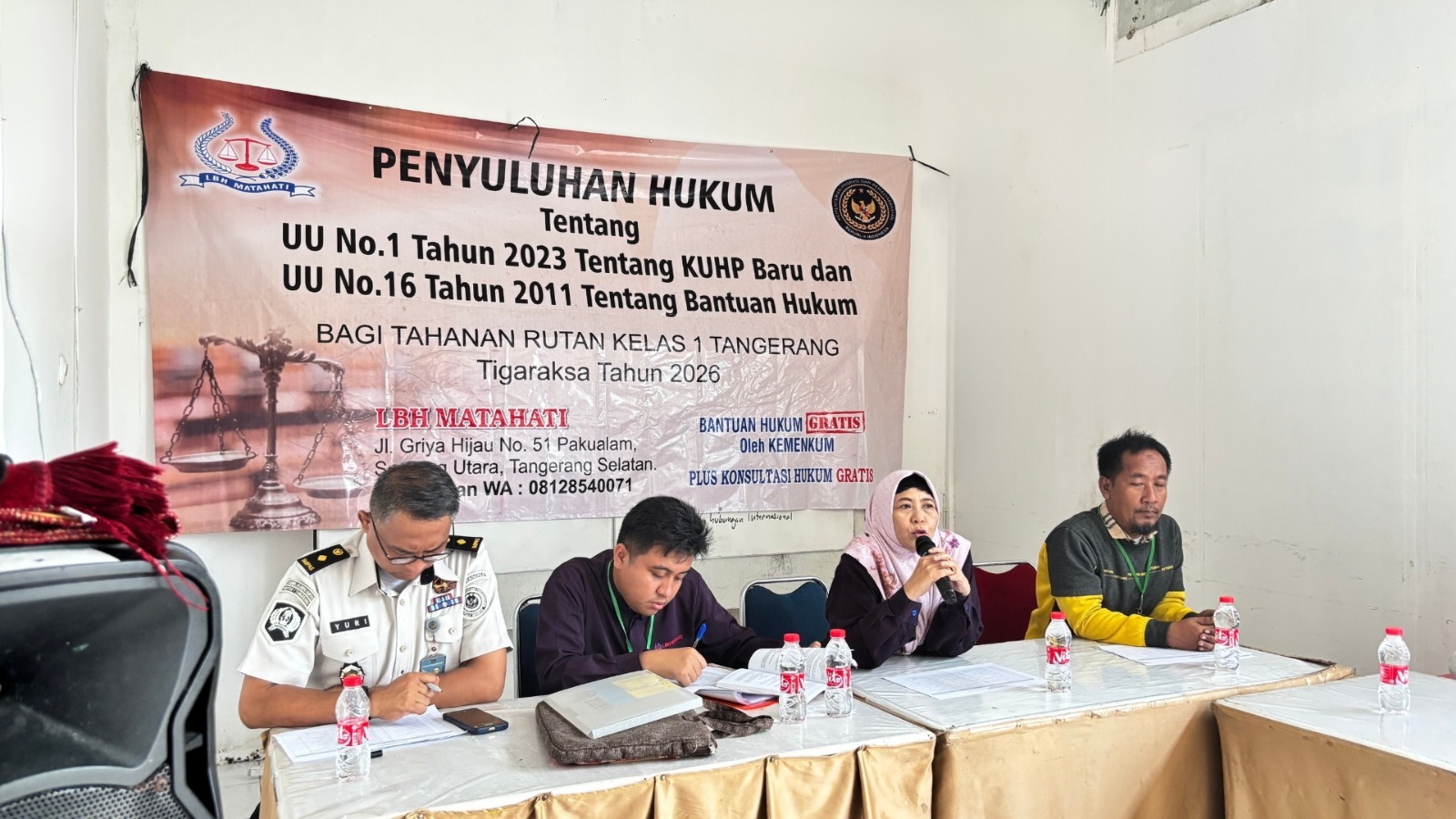 Kegiatan ini dilaksanakan melalui kerja sama antara Rutan Kelas I Tangerang dengan Lembaga Bantuan Hukum (LBH) Matahati. Melalui Sub Seksi Bantuan Hukum dan Penyuluhan Tahanan (BHPT), kegiatan sosialisasi diikuti oleh sebanyak 27 orang tahanan yang diberikan pemahaman terkait hak-hak hukum serta akses terhadap layanan bantuan hukum.