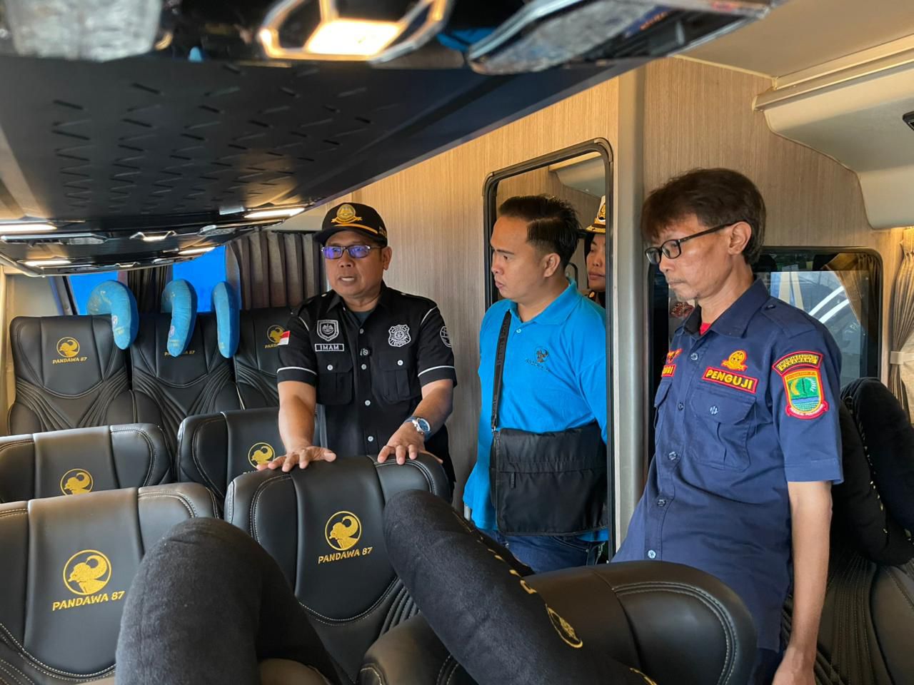 Pengawasan bekerja sama dengan Ditlantas Polda Jawa Barat, petugas gabungan menggelar kegiatan Ramp Check atau inspeksi keselamatan kendaraan di PO Pandawa Karawang, Kamis (30/4/2026).