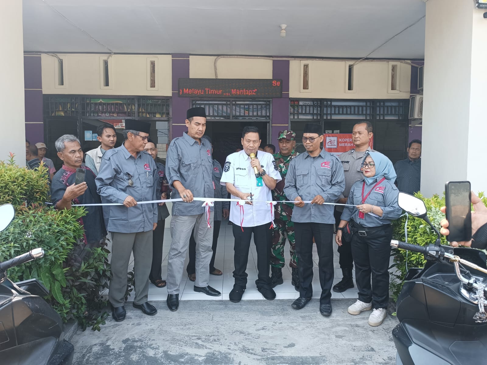 Babinsa Desa Kampung Melayu Timur Sertu Triyono memantau langsung jalannya kegiatan yang dihadiri antara lain Kasie Binwasdes Kecamatan Teluknaga Budi Usman, Kepala Desa H. Jamaludin, Bhabinkamtibmas Aiptu Oki, perangkat RT/RW, hingga pengurus koperasi dan kader PKK. Peresmian ditandai dengan pemotongan pita setelah rangkaian acara pembukaan, menyanyikan lagu kebangsaan, serta sambutan.