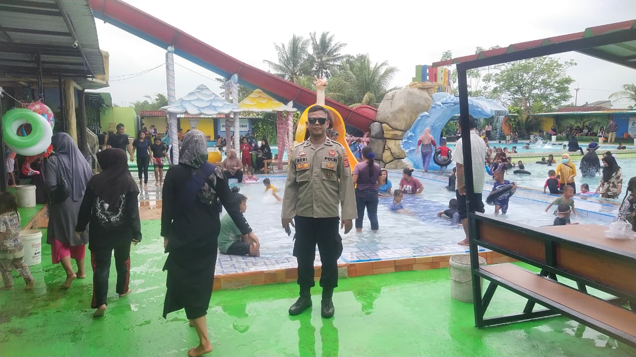 Personel melaksanakan pengamanan di objek wisata Kolam Renang Waterpark Binuang, Desa Sukamampir, Kecamatan Binuang. Kegiatan difokuskan pada pengawasan aktivitas pengunjung serta antisipasi potensi gangguan keamanan.