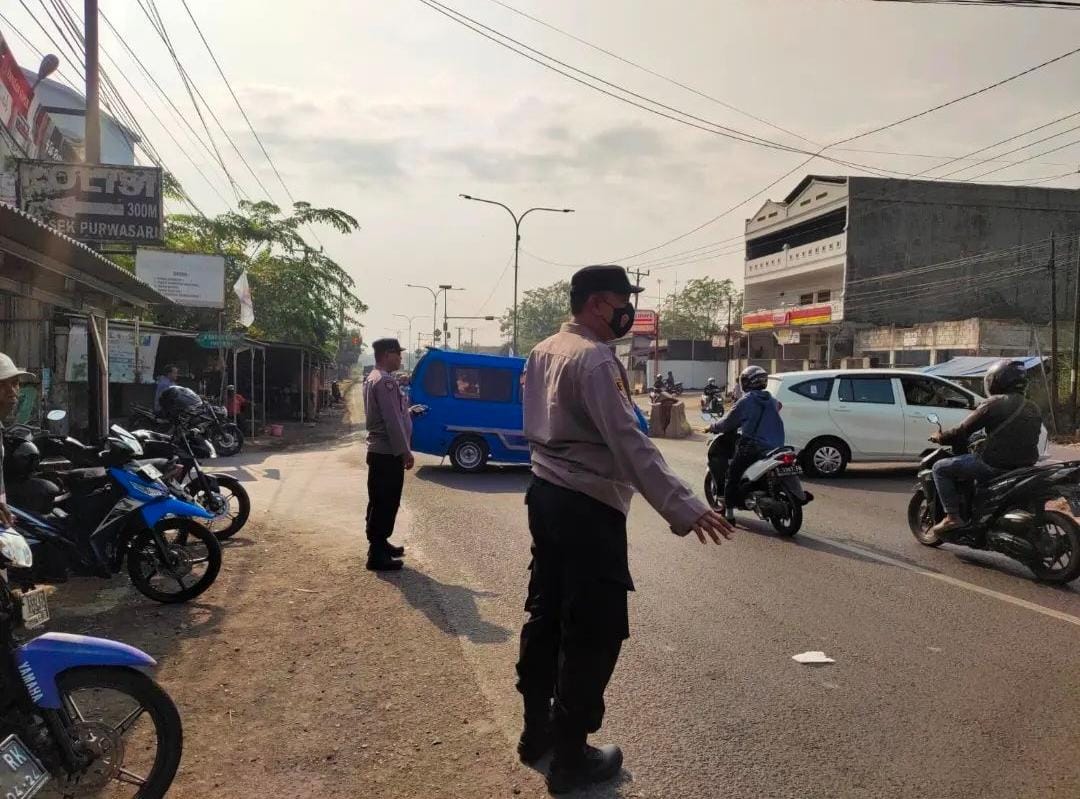 Rutinitas pagi hari dan guna kelancaran arus lalu lintas Polsek Purwasari Polres Karawang rutin melaksanakan penjagaan pengaturan (Gatur) lalu lintas Sore hari.
