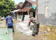 Babinsa setempat, Sertu Warno, turun langsung mengawal pembangunan rumah milik Ibu Asih, warga yang sebelumnya tinggal di hunian dengan kondisi atap dan struktur yang memprihatinkan.
