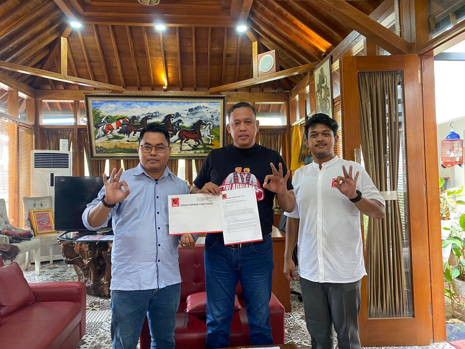 Kehadiran Suhaemi beserta jajaran Projo menandakan dukungan penuh organisasi ini kepada pasangan Tri-Harris dalam kontestasi Pilkada mendatang.
