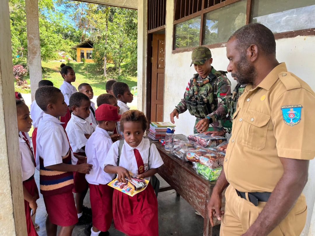 Jurnalnasional.Net || Kampung Kamat – Satgas Pamtas Yonif 501/BY menunjukkan kepeduliannya terhadap pendidikan di perbatasan dengan membagikan alat tulis kepada siswa SD di Kampung Kamat, Kabupaten Maybrat, Papua Barat Daya. Kegiatan ini bertujuan mendukung proses belajar mengajar di daerah terpencil. Rabu (13/11/ 2024).