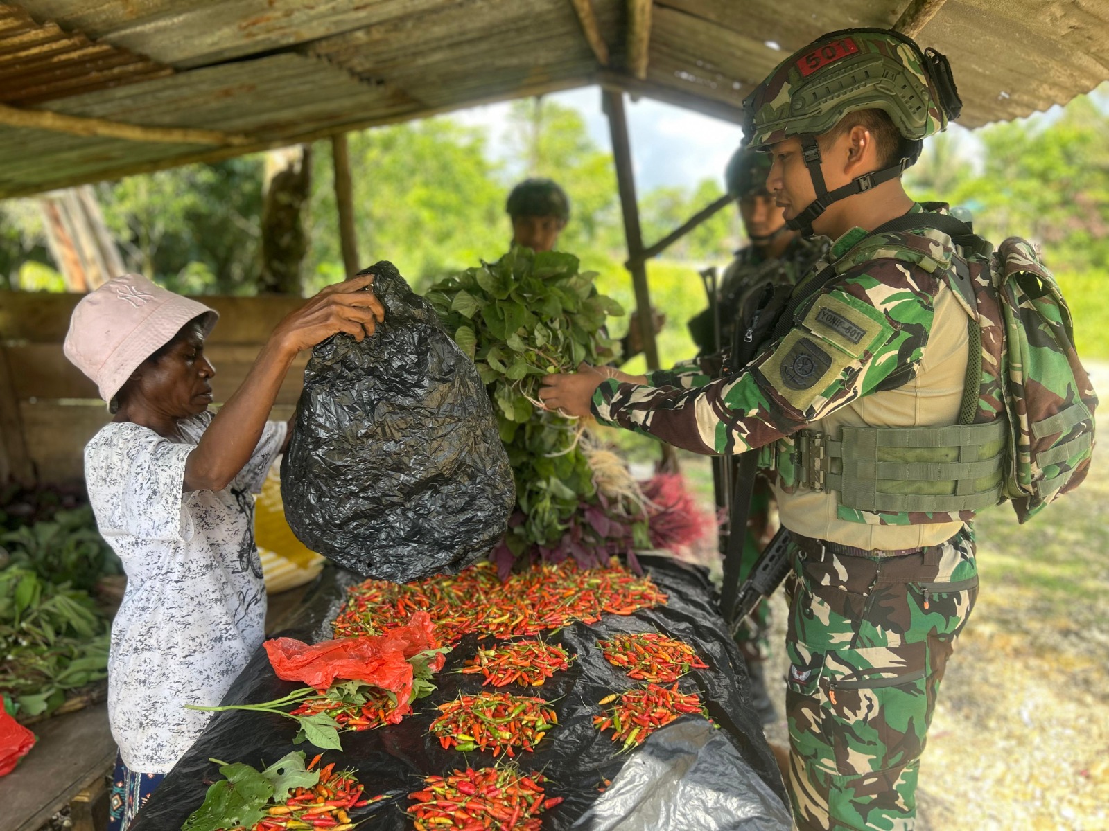 Satgas Yonif 501 Kostrad Gelar Barter Hasil Bumi di Kampung Aimasa, Perkuat Ekonomi dan Kebersamaan Warga Perbatasan