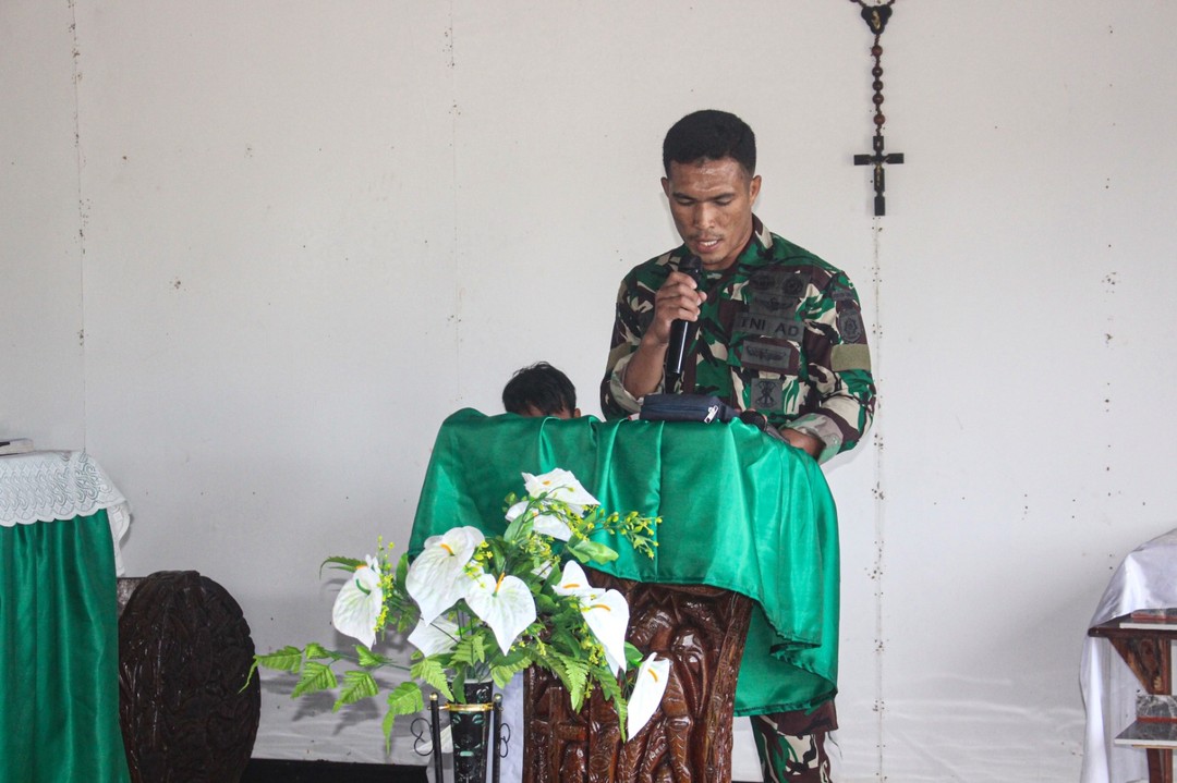 Menebar cinta dan kasih sayang umat nasrani selalu dilakukan Satgas Yonif 503/Mayangkara dipimpin Letkol Inf Gurbasa Samosir dengan 25 personel Kesatria Mayangkara yang beragama nasrani dalam ibadah minggu bersama. Berdoa seraya meminta kasih Tuhan Yesus akan karunia kesehatan dan kelancaran tugas selalu dipanjatkan.