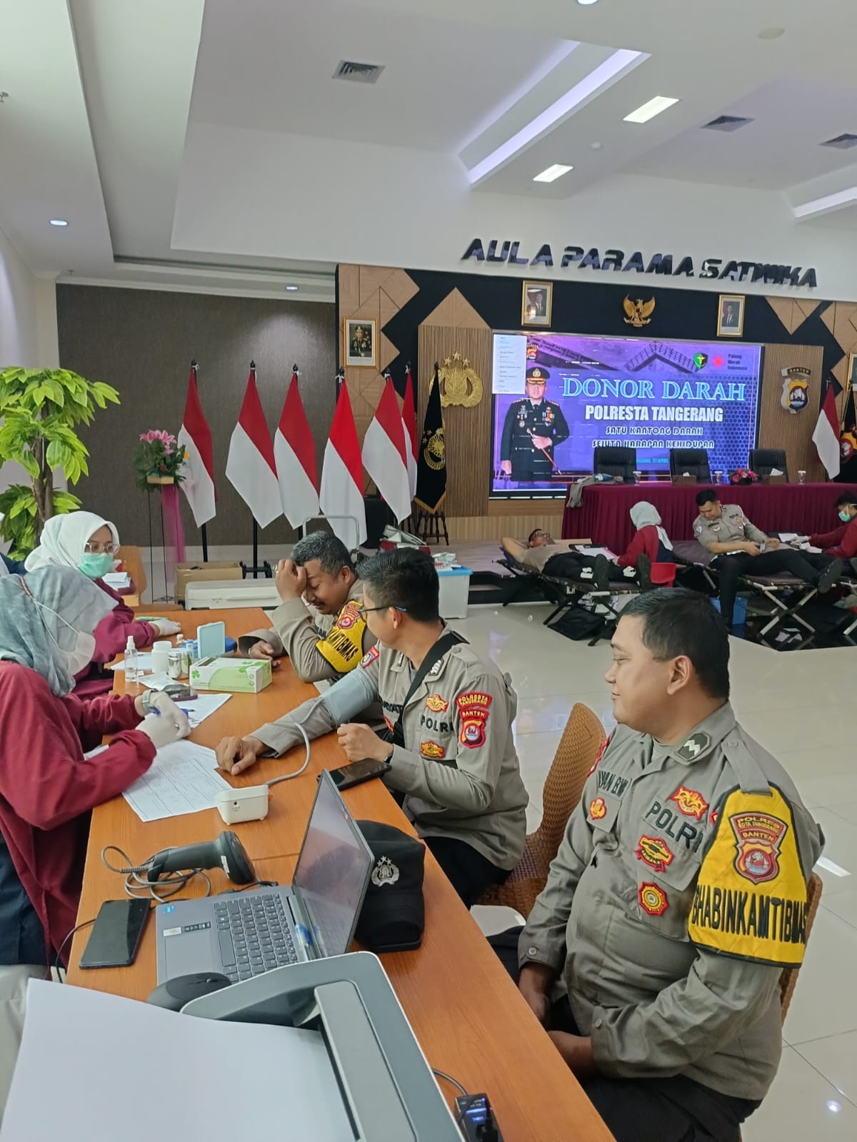 Jurnalnasional.Net || TANGERANG Dalam rangka memperingati dan mendukung program kemanusiaan “Satu Kantong Darah Sejuta Kehidupan”, tiga personil Polsek Mauk mengikuti kegiatan donor darah yang diselenggarakan di Aula Pharama Satwika Polresta Tangerang pada Senin (27/4/2026) pukul 08.00 WIB. Para personil yang berpartisipasi antara lain Bripka Khairul Rizal (Banit Binmas Sek Mauk), Bripka M. Syarif H. (Banit Binmas), serta Bripka Abdul Hakim (Banit Lantas). Kegiatan ini merupakan wujud nyata kepedulian Polri terhadap sesama, khususnya dalam membantu ketersediaan stok darah bagi pasien yang membutuhkan.
