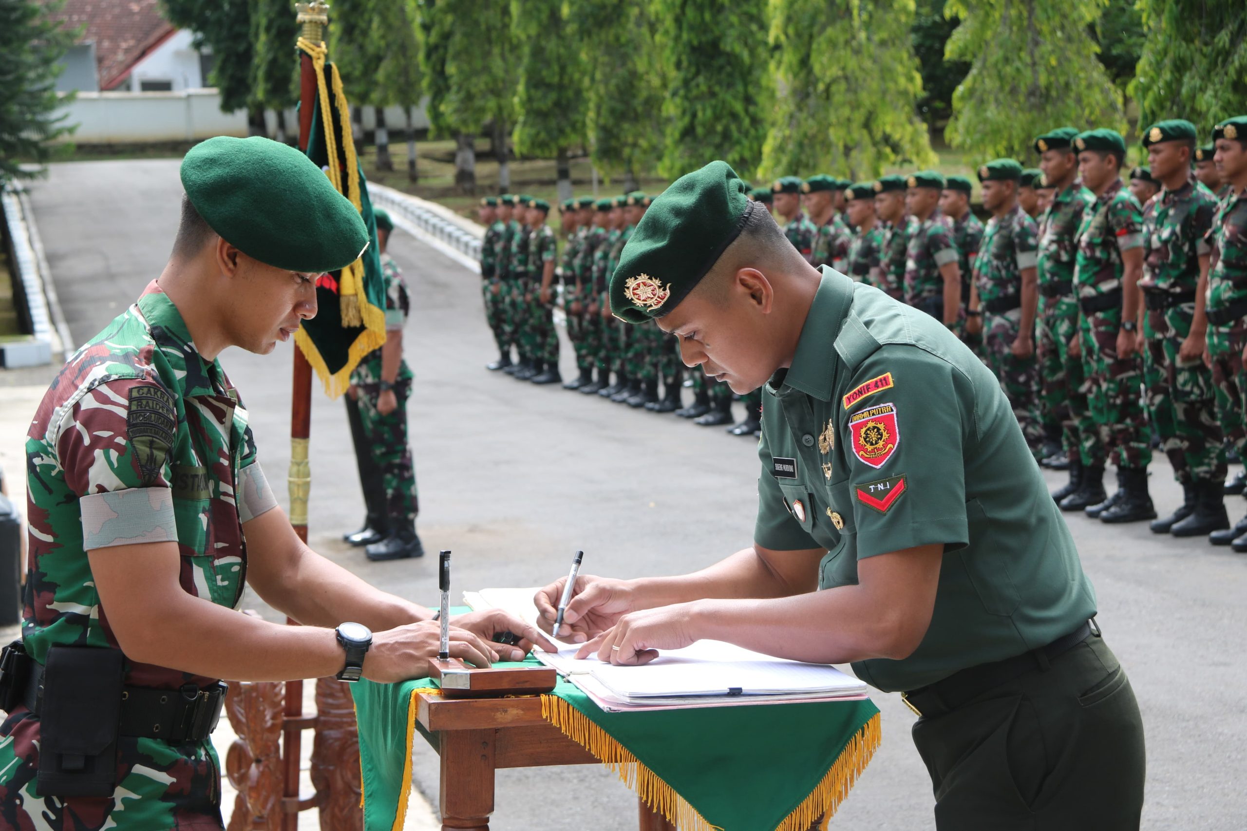 Dalam tradisi ini, Lettu Inf Nurohman, Sertu Andi Wirawan, dan Kopda Sugeng dilepas untuk bertugas di satuan baru, sementara sembilan Bintara Remaja (Baja) disambut sebagai warga baru. Mayor Ilham menyampaikan terima kasih atas pengabdian mereka dan berharap prajurit baru segera beradaptasi dan berkontribusi untuk kemajuan Pandawa.